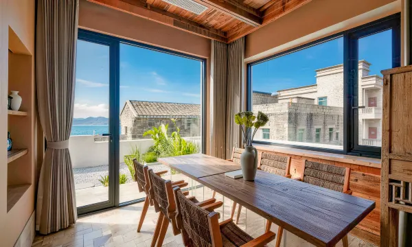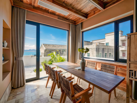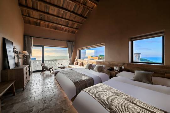 房间里就可以看海,还有个小阁楼,两张床,适合家庭亲子,附近就是长江澳沙滩,建议租车自驾