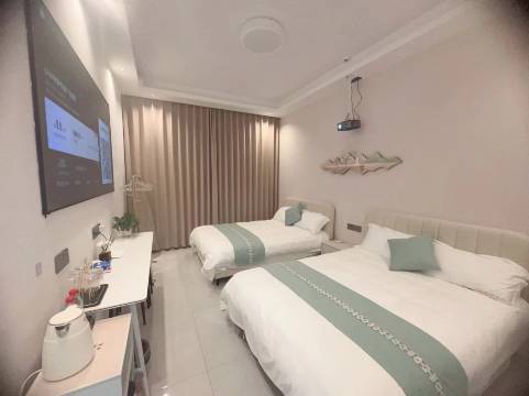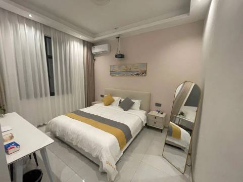 好的地方太多了,都不知道从何说起。第一印象是刚进房间非常香很舒服的味道,然后房间卫生间都很干净。卫生间沐浴露洗发水护发素都是一次性的小瓶的,沐浴露特别好闻,毛巾也都是一次性的很干净。房间有个超大的投影,特别是床很舒服,我自己认床一般在外面睡不好,但是她家真的很舒服睡的很好。我孩子说住这里像住家里一样,以后来玩都要住这里。像家的感觉,但是设施又达到了宾馆的标准。当时订了3天,后来孩子还没玩够,结果没房了有点遗憾。老板也很好,带我们去赶海,还请我们吃海螺,有什么不知道的问她就行。位置也挺好的,没有市区那么堵,去北线玩很方便,楼下都是吃的。玩了一个星期附近都转的很熟了,停车方便,附近就有电车充电桩。希望以后有机会还来玩,还住这。