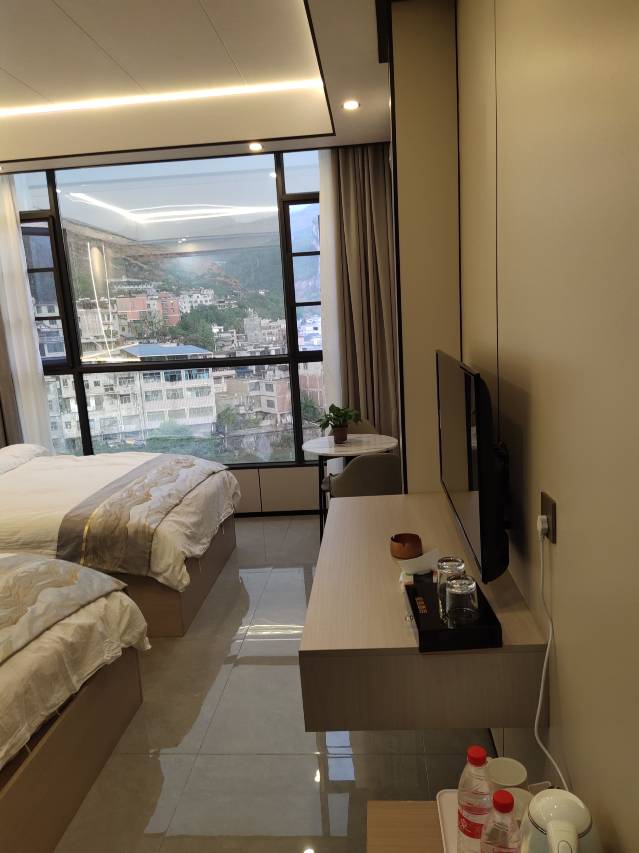 饮品:瓶装水 电热水壶 费用政策:该房型不可加床 便利设施:独立空调 空调免费 客房WiFi免费 房间内高速上网单一规格电源插座 110V电压插座 220V电压插座 遮光窗帘 手动窗帘 座椅 麻将大床房有沙发 房间有独立浴室 室外景观:享有风景 媒体科技:液晶电视机 浴室配套:独立卫生间 24小时热水供应 智能电热水器 独立淋浴间 吹风机 拖鞋 卫生纸 洗浴用品:牙刷 牙膏 洗发水 沐浴露 护发素 浴帽 香皂 梳子 毛巾 除步梯外有电梯