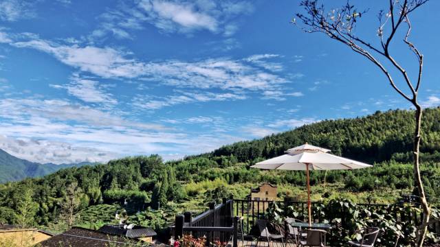 很温馨的小院子,多雨季节过后一切有一点潮湿就是,房间的床单也刚晒过,小姐姐很贴心的帮我升级了楼上的房间~晚上也特别惬意,在院子里喝茶喝酒,享受一个安静的山林夜晚~