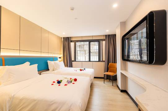 “带娃入住超省心!拖鞋/牙刷齐全“选址太绝了!步行3分钟直达网红步行街,周边美食/奶茶店云集,晚上逛吃超方便。“住过最干净的酒店没有之一!马桶圈有消毒连空调出风口都一尘不染。床品是那种晒过太阳的清爽感,拖鞋分一次性保洁阿姨打扫时会主动打扫卫生,细节控表示极度舒适!”服务暖到心坎里!前台立刻提供免费租借。离店时下雨,还帮搬行李。这种‘比家人还贴心’的服务,必须五星锁死!”
