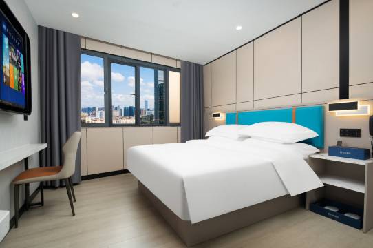 房间更是超出预期的惊艳!空间宽敞明亮,装修质感十足,最惊喜的是卫生完全无可挑剔——床品洁白无污渍,摸起来柔软亲肤,床垫软硬适中,配上遮光效果满分的窗帘,让我每晚都睡得格外香甜。卫生间干湿分离设计合理,热水供应充足稳定,洗漱用品是淡淡的清香,毛巾浴巾厚实柔软。房间里的智能设备操作便捷,高速WiFi全程无卡顿,床头的USB充电口和阅读灯设计得特别人性化,细节感拉满。
