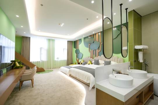 酒店在古城旁边很方便,整体民国风,环境幽雅适合打卡拍照,我们一家四口东北自驾游回京路上无意间发现的,没想到体验感超好,前台小哥哥小姐姐服务热情,亲子套房房间很大,有很多小朋友喜欢的设计元素,早餐也很丰盛,味道好吃,超预期的一次入住体验,强烈推荐小伙伴打卡入住