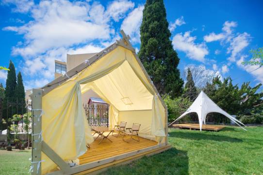 酒店周边的环境很棒,距离游玩的地方很近, 更绝的是他家还有一个单独的后院 有帐篷 可以家庭露营,酒店周边也是绿树环绕,房间舒适,床铺用品干净无异物,住的很尽兴
