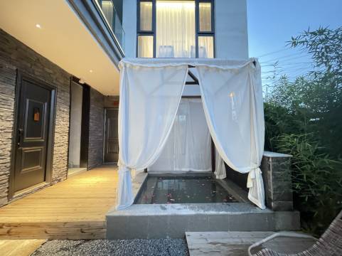 非常新的民宿,整体设计时尚、现代、智能!全屋天猫精灵🧚♀️语音控制👍老板很热情,民宿外菜园自己种菜,吃到的菜都是老板自己种的绿色无害!一早起来呼吸新鲜空气,晚上可以去大平台俯瞰整个城市夜景🌃!非常惬意的周末!建议带娃!屋内有滑梯!独立小院还有私汤!