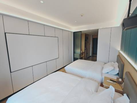 房间卫生环境很好,智能小度服务和马桶也很给力,投影也很好用,大窗户风景也不错