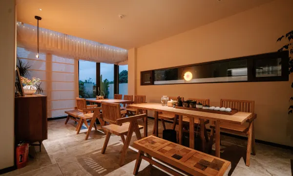 民宿位于广州市增城区派潭镇东洞村, 这里位于山野之间,远离城市喧嚣。 民宿一共有九间客房,侘寂风和极简风的 交融贯穿了整个空间。室内的宁静祥和,禅意 归寂,陈述着时间、生命、永恒。 设计将生态米灰与原木色相结合,保留了 原始建筑的肌理和脉络,既融合了现代美学又 保留了当地特色风情。 在这里,建筑是为了与自然更好地交融。
