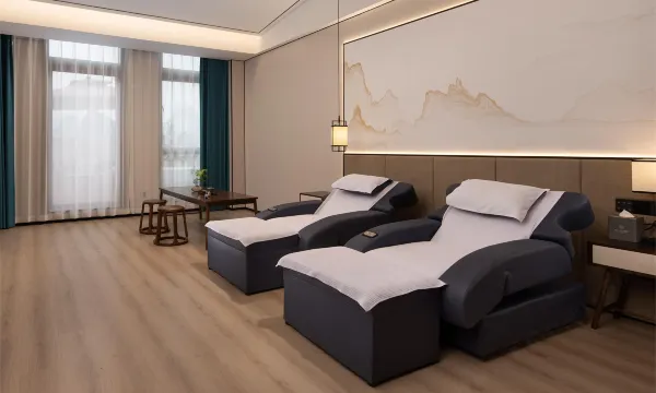 酒店床品选用喜临门床垫、康乃馨亲肤布草,标配徕芬吹风机、卫浴干湿分离,全屋智能语音控制等,丰富的设施满足您的不同入住需求。