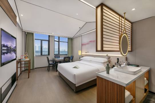 不错的酒店,装修风格挺时尚的,房间也干净卫生,酒店也很有特色,宋式极简风,还赠送了水果,早餐,很惊喜,下次住酒店还远他们家,也推荐大家来体验