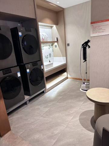 有洗衣机烘干机,工作人员会帮助客人排队洗衣,并及时处理已已洗好客人为取走的衣物。