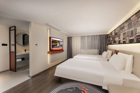 很好的住宿环境,离地铁站很近,出站100米不到就是酒店,前台服务态度超级好,热情礼貌,房间干净整洁,价格实惠,适合家庭住宿。