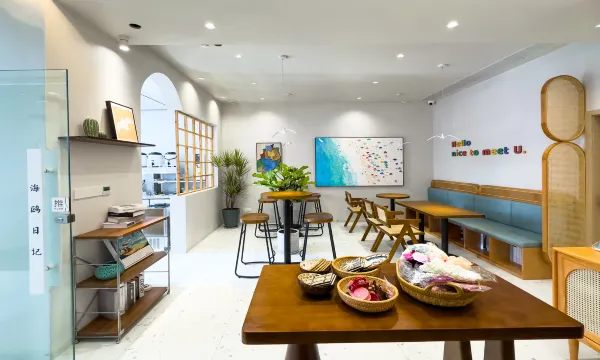 老板人非常好,因为老板娘不在🤣海鸥没有开,老板直接带到隔壁,也是他们的民宿,还给我免费升级了房间,非常感谢🙏。民宿是景区中心,周围也要很多吃的,离网红店铺和打卡点都很近,住的房间是云梦,房间很有设计,窗外就是大海,真的是躺着就可以看到海景,心情都很好,听着海浪的声音,真的很惬意,房间关窗隔音很好,附近就是网红打卡点也不会吵。老板服务真的很好,亲自接到民宿,还提供美食和游玩的攻略,需要电动车也可以和老板说,老板也会帮忙联系叫人送过来🫡👍(ps:就是可惜没有吃到海鸥日记的甜品,还是很期待的,希望下次有机会过来吃)