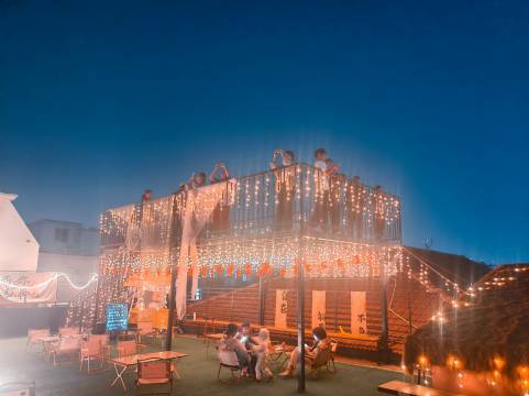 而意想不到的是,酒店楼顶是一个大天台,老板布置的非常好看,打卡拍照很出片,网红轻奢的风格和酒店本身形成了反差,天台无遮挡死角就能看到黄鹤楼和长江,这个价格真的很实惠