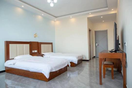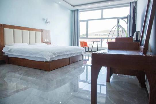 一张大床一张单人床,最主房间还特别大 足足有40平米吧,老板人也好,不得不给👍,离大滩骑马的大平草原和马镇很近,到各种免费也景点很近很方便