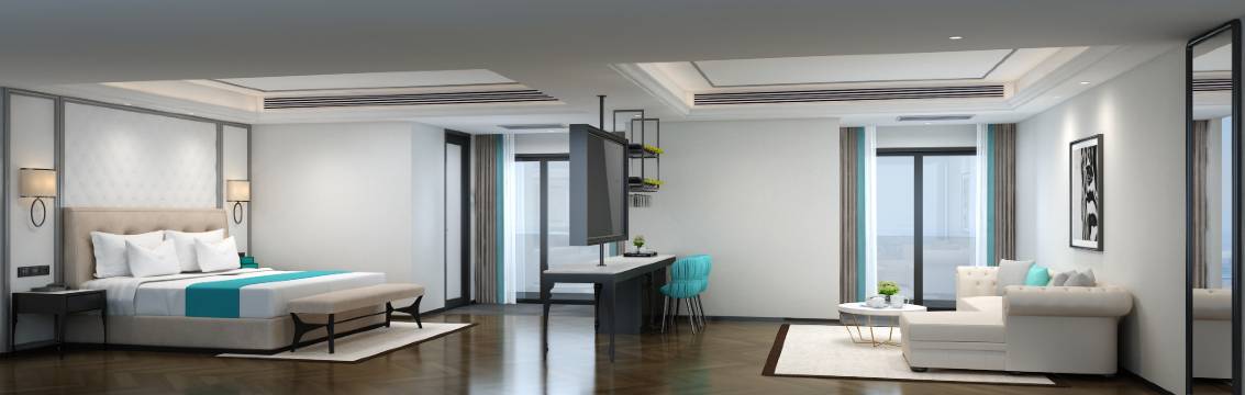 房间干净整洁,设施都挺新的,还有阳台,通风没得说。智能化程度高,空调,电视电源,灯光,窗帘小度都能直接控制,很方便。
