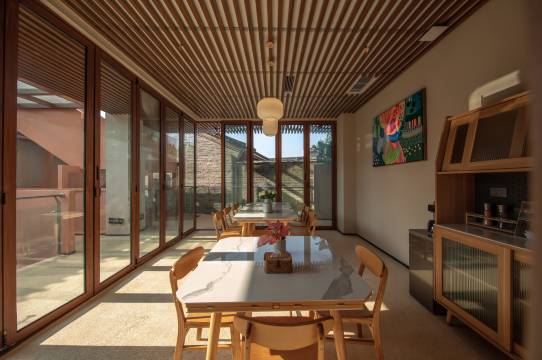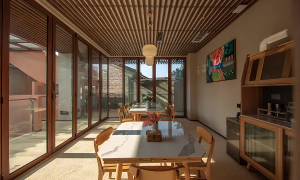 客栈位于腾冲和顺古镇内,临近野鸭湖、艾思奇故居等,车辆可以直达客栈,交通便利,附近有免费停车场。客栈所处之地远离繁喧,难得的保留着当地的原始和质朴,没有被过度开发,与当地村民为邻。客栈每一处细节都用心设计,在古村里完美地融入了现代自然的设计。客栈房间主打舒适,房间很宽敞,通风采光好,配备智能马桶,床品高端,床铺洁净是我们给客人的信心保障,房间安静且舒适。平时可以在茶台慢慢地享受飘香的清茶、在书房安静地看本书或者在我们影视投影房看个电影,傍晚还可以在天台观看日落的余晖,景观360度无遮挡,尽情感受田园古镇的漫妙。