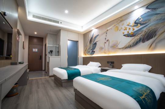 遇见这趟旅行最负责的老板了。帮忙提行李。房间装修的很商务温馨,卫生间犄角旮旯都收拾的很干净。拖鞋都很用心,不像其他酒店鞋底薄。订的三人间,适合孩子一起,空间很大。酒店位置也很好,西门走过去几百米就到了。
