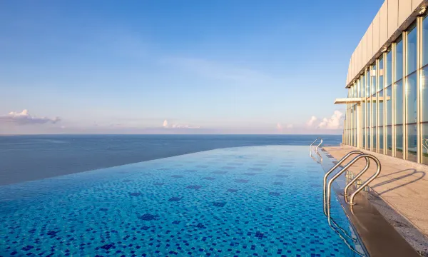 酒店坐落于北海银滩旅游度假区,尽享江海交汇壮丽景色与逐浪赶海的乐趣。直线距离”天下第一滩“北海银滩仅步行约5分钟。毗邻涠洲岛客运港,周边环绕侨港风情街等热门旅游景点,地理位置得天独厚。 酒店秉承中华美学生活化的理念,巧妙融合海丝文化和疍家民俗风情等本地文化元素设计,酒店外观宛如扬帆远航的帆船,带领宾客重走海丝之路。 现代中式风格客房及充满童趣的亲子主题房共270间,高端粤菜及北海珍馐为特色的彩丰楼,饕餮盛宴的鲜艳自助餐厅,适于静谧交谈和会客品茗的举茗邑,赏浪漫日落的星空吧,均别具一格。酒店配备室内外三大泳池,步入天际泳池碧波,赏日出、观潮汐;更有四大亲子专属空间——儿童戏水区、萌宠乐园、迷你高尔夫、华邑农庄。酒店精心打造亲子赶海研学、国风市集、非遗雅集等活动,让您与家人畅享亲海度假的惬意与欢乐。逾2000m²的室内会议空间及3800m²户外中庭花园,轻松满足您各类商务会议和社交活动的需求。