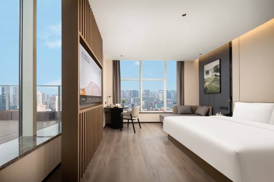 酒店设施房间布置:房间宽敞明亮,布局合理,装修风格简约而不失格调。有舒适的大床、柔软的沙发、宽敞的办公桌等,满足了休息、办公和休闲的多种需求。卫生情况:酒店的卫生状况非常好,房间里角角落落都打扫得干净,卫生间也清洁得十分彻底,让人感觉很舒心,酒店隔音好,酒店隔音棒,隔音效果好,隔音效果不错,房间有浴帽和棉签,客用品配备很完善!水温很合适,淋浴好用、淋浴方便,淋浴好评,浴室淋浴好!隔音也很棒,房间隔音效果不错,房间隔音很好,房门也很隔音,隔音很好,离店小姐姐会主动送矿泉水给我,离店会主动赠送非常贴心。干净舒服,进大堂气味很舒服,前台服务热情,暖心水会送,入住会奉茶,茶好喝。退房的时候还贴心的给了2瓶矿泉水,退房时还会询问要不要带水,离开有送水,离店也有暖心水,退房的时候还送了水;离店暖心水很好,离店还送水很不错,退房还送了一瓶水和自制果茶,退房还会给您冰水路上解渴!入住有茶水奉上,退房有矿泉水;退房的时候还给我拿两瓶水带在路上喝,小姐姐退房时主动送了两瓶水,退房时也主动提出送瓶装水给我们路上喝,退房了还给带了几瓶水,走时候还问要不要路上带瓶水。吧台干净整洁,路遇会问好,所有工作人员都会热情打招呼问好,离店有暖心说,入住前会提前电话联系,告知酒店位置