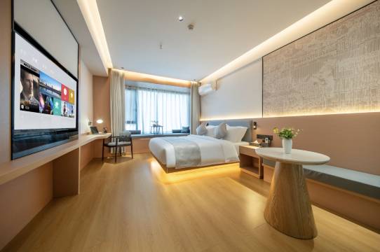 房间整体布局暖色调比较温馨,有暖气不冷很暖和,卫生很干净,床垫很适合腰不好的人睡,软硬适中,前台小妹妹服务很好,问什么都亲切回答,推荐给公司行政了,后期统一要房就从这家酒店订房了,房费不贵,性价比拉满!