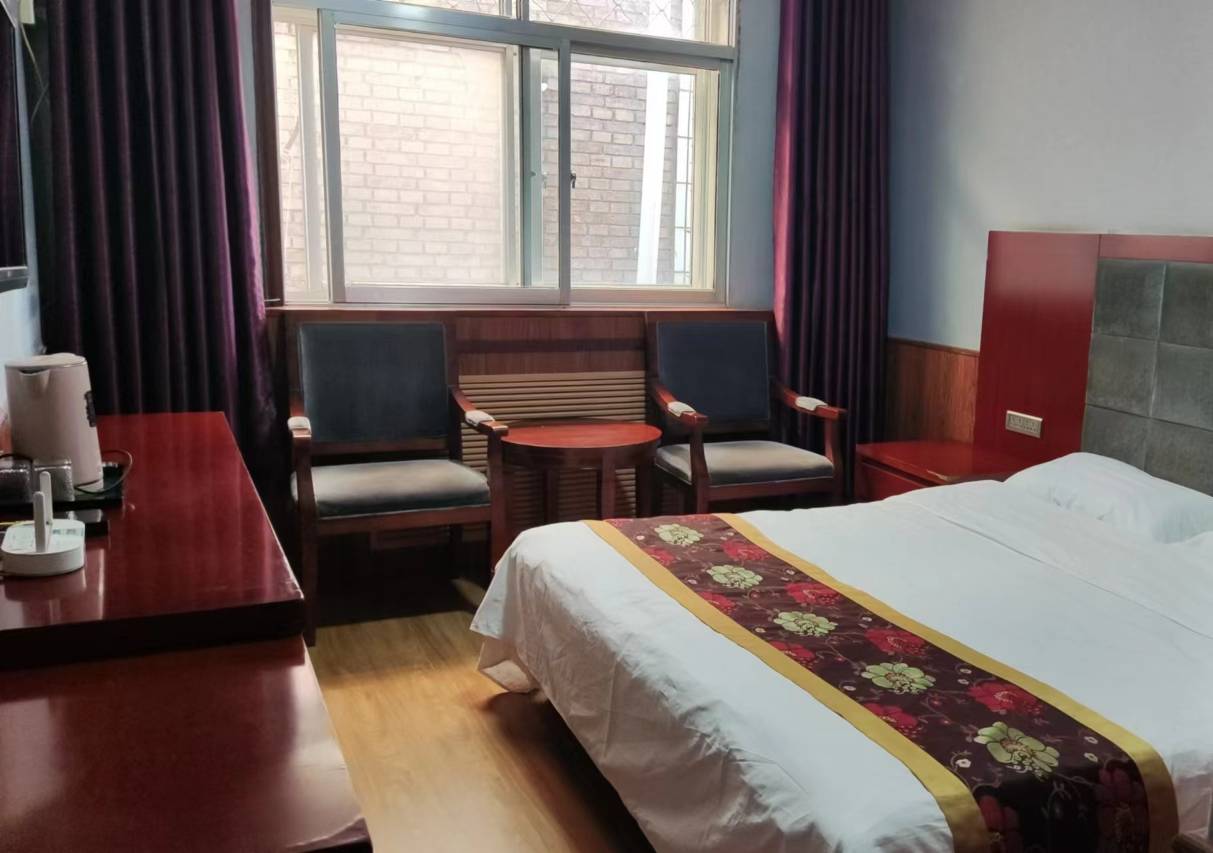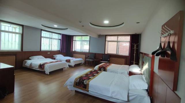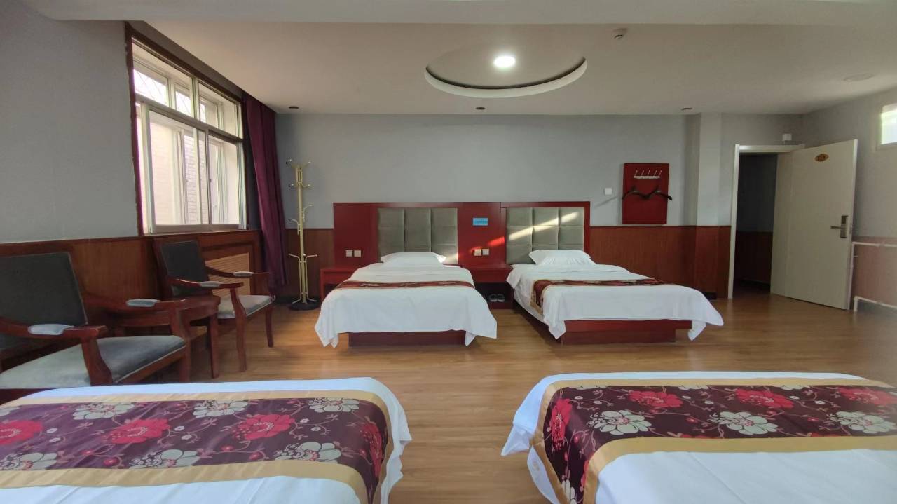 这是隆德旅行入住的最好的一个酒店,看酒店外贸本以为是普普通通,但是小洞大乾坤,入住之后才发现酒店内部客房如此之多,内部规模很大,我们入住的是一个四人间,这个房间空间非常大,四张床铺整齐的摆放,室内卫生非常干净,家具等都是崭新,各种卫生用品一应俱全,个人认为不输给大牌星级酒店,老板娘还热情地给我们拿来电饭锅,帮我们煮玉米和豆角,酒店背靠着北象山公园,风景秀丽优美,空气凉爽宜人,确实是隆德县的一个很好的酒店