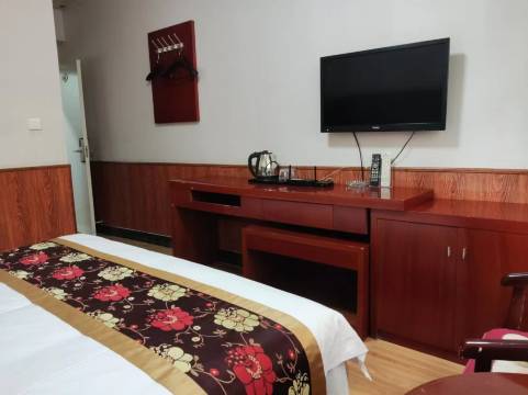 酒店处于县城城边位置,门口是国道!门口能免费停车,晚上相对比较安静!能够足额提供发票!附近餐饮点大概200米左右!