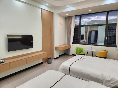 新的酒店,环境很干净卫生,老板也很好,很热情,大厅有按摩椅,还有一些书可以看,早餐那些不知道吃啥问老板,老板还会帮忙指路,临走时候老板还有小礼物送,离仙草湖也不是很远,住镇上买东西吃东西方便些!