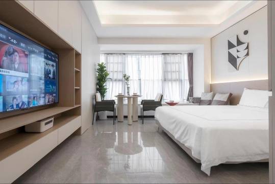房间整体干净整洁,设施齐全,家电这些都是小米的,房间是上下两层的 房间有一个比较大的落地窗,定的不是海景房 但是这个房间躺在床上也能看到部分大海,也非常不错,特别是日落时候特别好看,服务也非常细致,到的时间比较晚,管家提前联系了我然后给我发指引能让我准确找到房间,考虑比较全面,非常满意