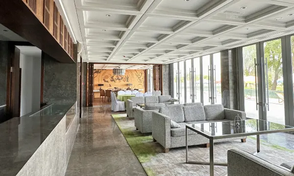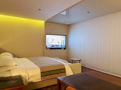 房间拥有超大幅的观景落地窗 这里不像是普通的酒店,更像是一个私密的园林庭院。院内有老树、青石板路,装修设计很有艺术感,适合喜欢安静、拍照打卡的住客。