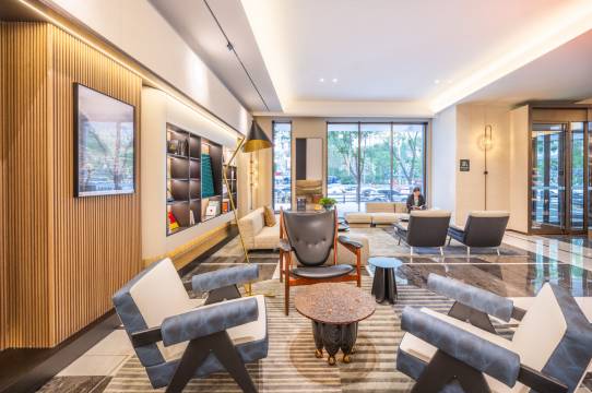 酒店大堂设计大气,环境优雅,给人留下深刻印象,办入住时乐休提供了茶水,酒店位置优越,交通便利,周边设施齐全,房间整洁舒适,装修风格温馨,花洒水流流畅,欧叶耐心的告知了电视投屏怎么使用,早餐种类丰富,味道可口,满足不同口味需求。