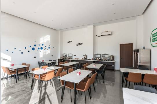 早餐是自助式的,种类挺丰富的,包子之类的蒸的,炸物,还有一些饮品,口味选择很多,吃得很饱。
