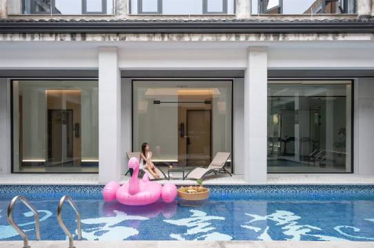 隐匿于湖州南浔古镇的幽静之中,这里古韵悠扬,水乡风情如画,民宿建筑汲取江南传统建筑之精髓,青瓦白墙,飞檐翘角,每一处细节都透露着古典的优雅与宁静。它以古色古香的建筑风格和现代家居的精致融合,为旅人们提供了一个远离尘嚣、回归自然的宁静之所。 民宿有一座宽敞的泳池,宛如明镜般映照着天空与四周的景色,让您在炎炎夏日享受清凉的泳池,让身心得到彻底的放松。无论是清晨享受新鲜空气,还是午后的休闲时光,都能在这里找到属于自己的宁静与惬意。 客房内,现代家居与古典元素完美结合,既保留了古色古香的氛围,又带来了现代生活的舒适与便捷。部分房型更配备了汤池和浴缸,让您在享受古镇风光的同时,也能体验到水疗的放松。公共区域典雅安静,书籍、茶具、精美摆件一应俱全。您可以在这里品茗论道,也可以沉浸在书海中,享受属于自己的静谧时光。 民宿还提供中式营养早餐和西式下午茶,让您的味蕾也能感受到这份雅致与用心。此外,民宿还免费提供健身房,让您在享受休闲时光的同时,也能保持健康的生活方式。民宿不仅仅是一个住宿的地方,更是一次心灵的旅行,一次与古镇对话的机会。在这里,您可以放慢脚步,聆听历史的声音,感受时间的流转,享受一段属于自己的静谧时光。