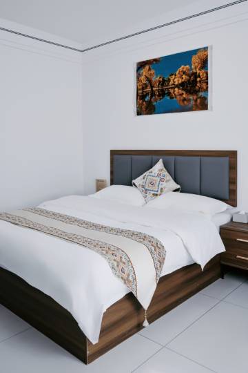 导航进村,看到的是一栋栋当地民居,只能通过墙上的网红标志判断这一片是奥融酒店了。在前台美女的引导下进入客房,才从疑惑变成惊喜。门厅内有当地商品展示架,冰箱,洗菜池。客房的设施都挺新,床居干净,完全是星级酒店级别。民宿区远离公路,非常安静,适合带家人旅游度假。