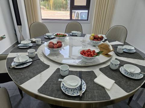 民宿位于桐柏县程湾禺峰野茶园(黑明寺)是一家集聚文化民宿、特色中餐、农耕体验、自然教育、户外娱乐为一体的田园民宿综合体。,民宿设餐厅山海20人台、福泉10人台,休闲茶室、棋牌、乡村特色中餐、下沉式互动空间、露天烧烤、茶博馆及茶品售卖等配套,满足不同客户的需求。项目周边有野生茶园、垂钓体验平台、自然教育区、登山徒步线路、户外露营烧烤区、手工体验等多种体互动体验区域。