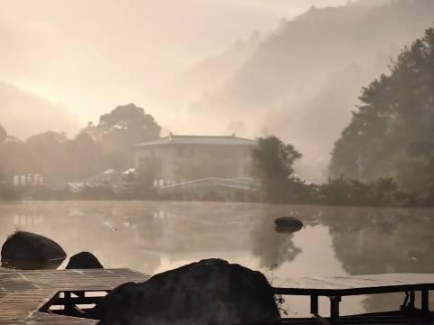很不错的一次住宿体验,带着父母和孩子,感受到了大山里的宁静,早晨是被山林中的画眉鸟吵醒,溪水潺潺,白云为伴,连续几天的下雨,孩子们还在山里采到了🍄,坐落在古树怀抱中的黑明寺,缅怀中的画面好像定格在了那段历史中,忆往昔峥嵘岁月稠,恰似一江春水向东流!