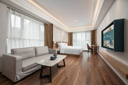 酒店服务热情,酒店位置优越,客房清洁人员也很亲切,前台妹妹也很热情,可能过去比较晚,主动帮忙给升级了房型,房间的价格也很实惠,性价比高!得到的不止一次舒适愉悦的入住体验