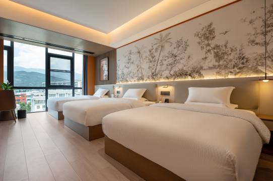 房间干净整洁,落地窗,空间大敞亮,视野好!第一次入住1.5米大的双床房,开空调,灯光,接通前台电话一个小度通通搞定。床上用品品质非常好,整体服务还不错,下次出差就住这家!
