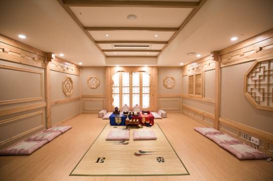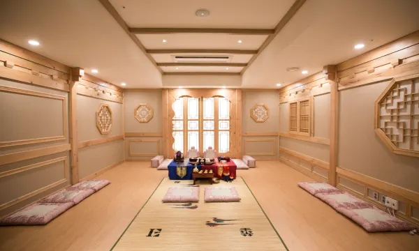 位于两个地铁站之间,附近有巨多便利店和两个大超市,有各类烤肉店,酒店属于婚庆酒店,平时游客较少,非常推荐