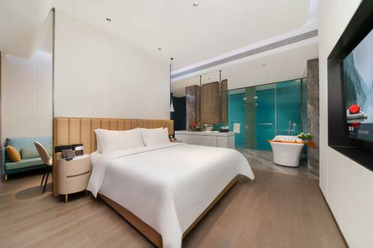酒店各方面都很出色!房间设施高端大气,配备迷你吧、保险箱和熨烫设备,满足商务和休闲需求。前台和客房服务人员都非常专业,响应迅速,态度友善。酒店周边环境繁华但不嘈杂,靠近景点和商业区,出行便利。服务团队训练有素,从门童到客房清洁,每个人都面带微笑,乐于助人。前台服务热情设施齐全停车免费。