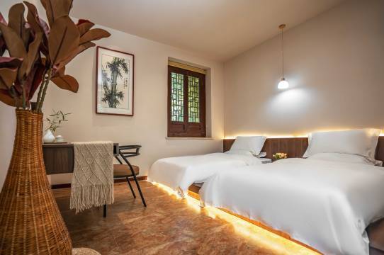 原汁原味的明清古建筑距今300多年历史,由知名设计师重新打造而成,院内有【金榜题名】匾,小别城市,静下心,去拥抱古城的清风,院内有枣树、杏数、柿子树、海棠树。这里繁华之外安静之上,栖与民宿,寻找最本真的情怀。一城一景一浮生,一慢一静一闲心。地点:山东淄博周村区周村古商场状元街,交通便利,周村古商城号称“天下弟一村”,被誉为“中国活着的古商业建筑博物馆群”,是我国江北保存较完好的明清古商业街区,状元新街是周村一条古老的街道。始开于清朝康熙四十八年(1709年)。【房间】: 房间类型①西厢·雅致大床房,可住2人 房间类型②禅意·古朴双床房 1.2m单人床 2张,可住2人 房间类型③金榜题名·古韵大床房 1.8米大床一张,可住2人 房间类型④锦巷·围坐亲子家庭房 1.8m大床一张+1.2m单人床一张,可住3人 【房屋/院落配置】超大庭院丨闹中取静 【娱乐设施】:古筝丨茶室丨餐厅丨会议室 【停车场】收费停车场丨充电桩 【周边】4A级景区周村古商城丨周村烧饼博物馆丨大染坊文昌阁丨状元府丨杨家大院丨淄博汇龙桥烧烤城等。周边餐厅美食应有尽有。