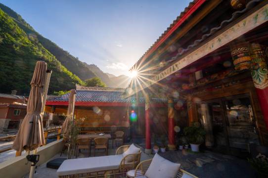 在九寨沟!本店,一座群山环绕的民宿,超治愈! 选址背靠大山,正面斜阳 森林、山谷、星空、微风...... 伸一伸手便能触摸到云海 一出门就能看到山谷与森林 复古原木客房,保留原始自然的感觉 超大落地窗里是惬意的私密空间,窗外是大自然与独特藏文化无缝融合,看云卷云舒、听鸟叫虫鸣。 民宿生活配套 住在本店,是住宿也是一种旅行 1.民宿配套原木木屋远离城市喧嚣 2.抛弃现代空调设备结合复古风扇吹动夏日清凉微风 3.藏文化特色多功能房,用早餐开启一天的休闲时光 4.栖熹观景平台,晴观日落星空,雨看云雾山岚 5.大幕共享电影幕布,放下手机共享同一个话题 6.藏族特色铜锅火锅,让味蕾一起旅行 7.夜晚篝火晚会,结交各路友人,拉进彼此距离 在本店,一壶酥油茶、山海为书、清风翻页,漫度悠闲的慢时光 娱乐 日落徒步、山谷徒步、采摘体验、林间荒野旅拍、策马奔腾、民宿篝火。 贴心服务 提供民宿至景区免费接送服务。