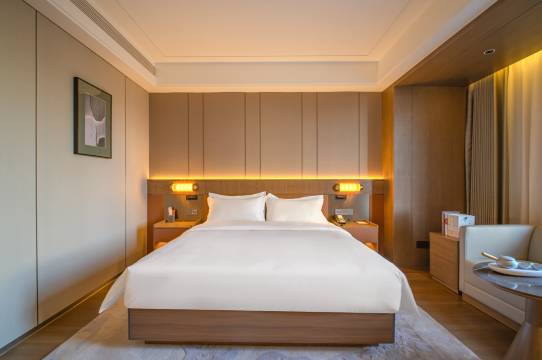 必须给这家酒店的服务点赞!一进门超大气的大堂,前台还有百宝箱!办理入住时前台还主动升级了房型,还贴心送上了欢迎水果,打扫阿姨每天都会把房间整理得井井有条,连洗漱用品都会按习惯摆放,体验感满分,强烈推荐!