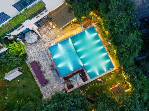 后花园有游泳池,小朋友很喜欢,玩的很开心。整体服务态度很好,能耐心解答各种问题,酒店大堂和房间都很有特色。