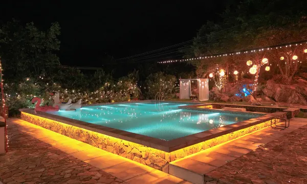 环境:游泳池有小花园