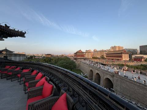 地理位置堪称完美。酒店步行5分钟即可抵达永宁门(南门),清晨登上城墙骑行,俯瞰晨光中的钟楼与回民街烟火气,是独属于西安的浪漫。夜晚逛完大唐不夜城,打车10分钟即回酒店,免去了拖着行李奔波的疲惫。