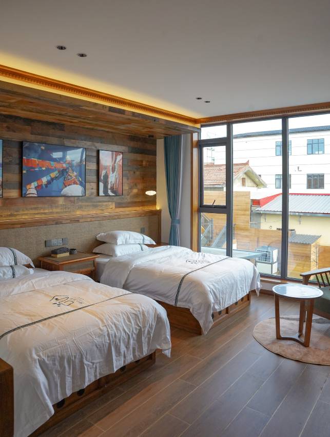 一眼被民宿装修吸引,立即预定!老板给升了房,更是意料之外的惊喜!房间设计考究,摆件美感十足!可以说一万分推荐!另外:壁炉十分美观温暖,制氧机十分有用!
