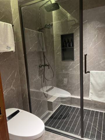 房间出乎意外的好看!高端上档次!装修别具一格与众不同。用料讲究,重金打造。卫生间智能马桶,洗发水特别点赞。好香好柔滑。内部有大庭院。咖啡厅。很舒服,很自在的一家民宿。不亚于五星级酒店的装修标准。有免费洗衣服,很方便。