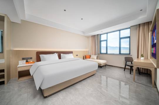 酒店住的很舒服 升了级房型 房间很大 干净整洁 早饭丰盛 还有西瓜 工作人员都很热情 非常棒 停车场也很大 离景区也很近