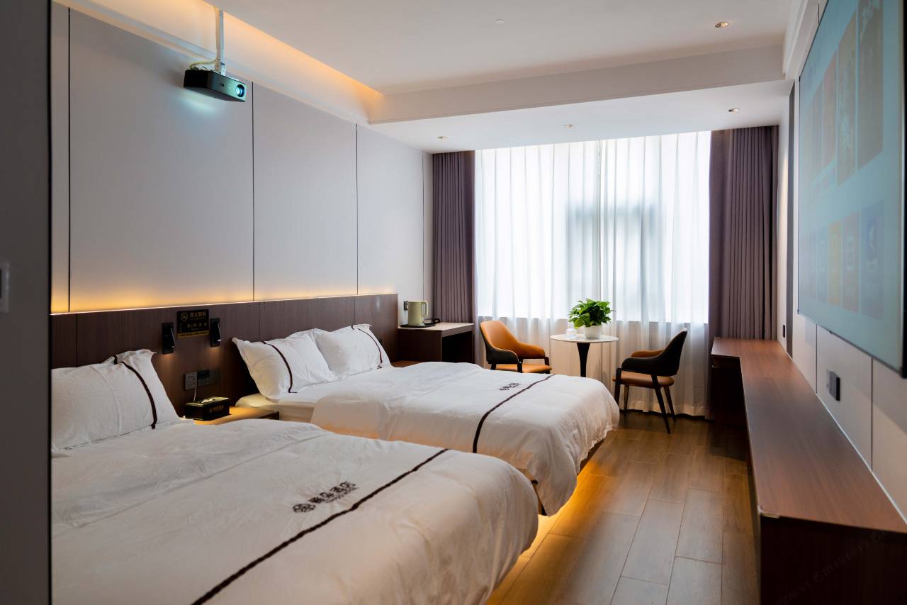 酒店的电影房真是个惊喜!巨幕投影和环绕立体声让观影体验超棒,房间舒适安静,前台还有自助零食小吃,服务也很周到。特别喜欢躺在床上享受电影的感觉,下次一定还会再来!