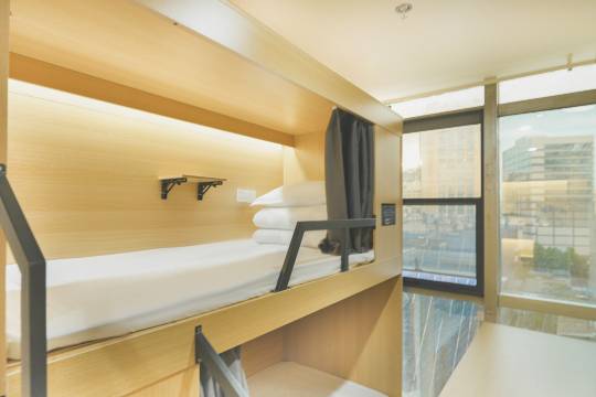 房间干净无异味,床位配了遮光帘、小台灯和充电口,隐私感拉满。